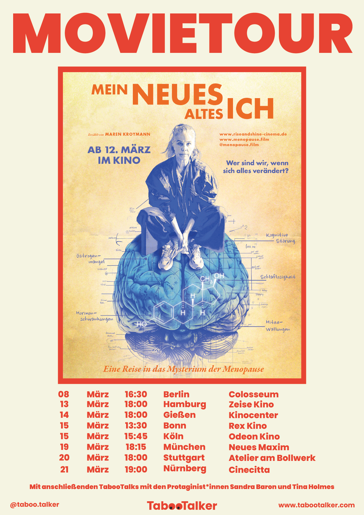 Ab dem 8.März sind wir auf Tour und begleiten die Premiere des ersten europäischen Menopausen-Films mit TabooTalks vor Ort.